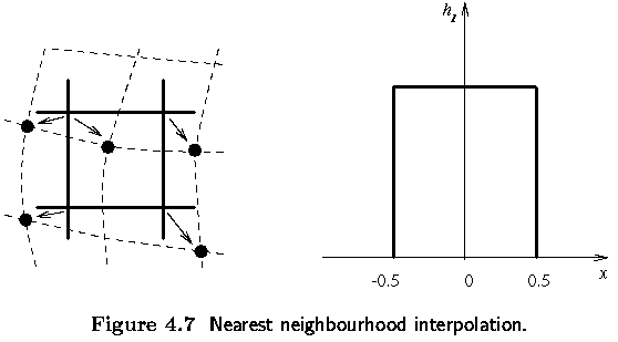 - assigns to the point (x,y) the brightness value of the nearest point